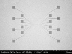 左图为二次掩膜照片,右图为分子存储器的下电极照片,均采用X射线曝光得到