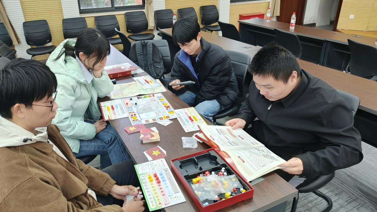 本次活动创新引入了红色主题“剧本杀”与桌游环节。同学们围坐在一起,翻开厚厚的剧本,瞬间“穿越”回那个动荡不安的年代。