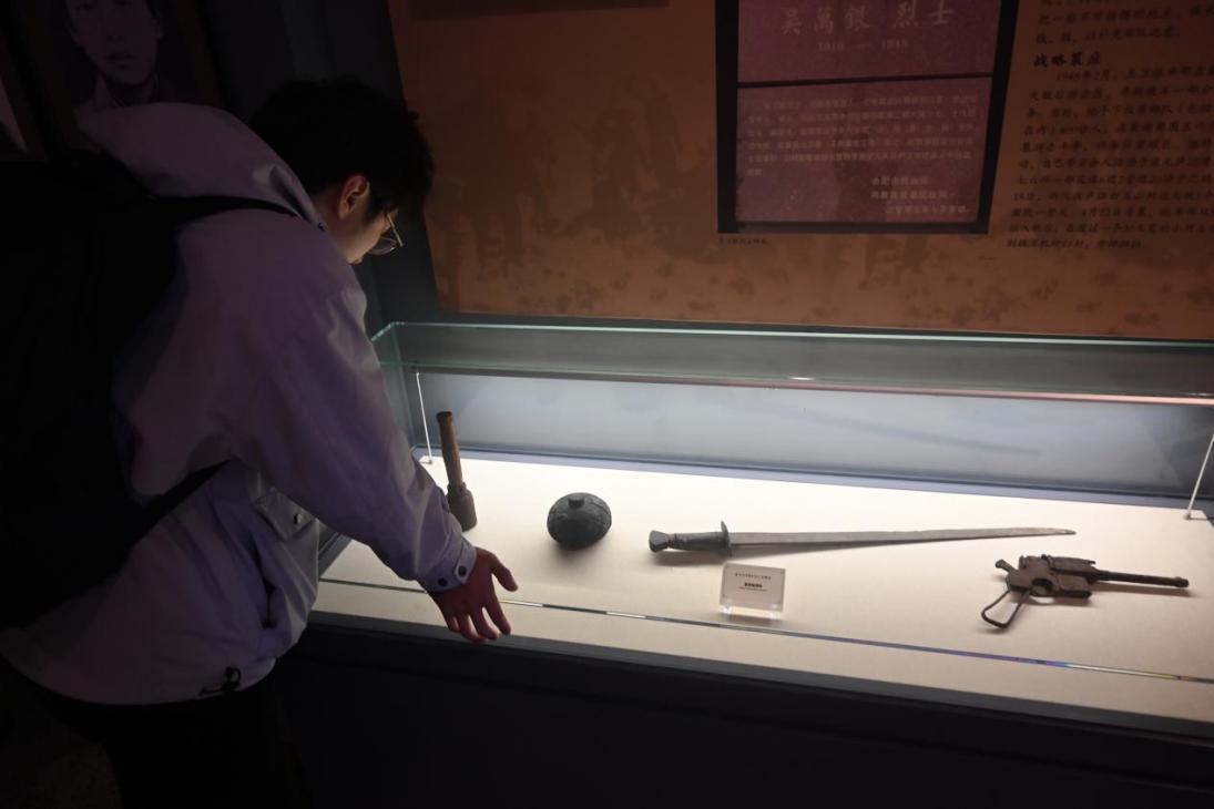祭扫仪式结束后,同学们走进安徽革命烈士事迹陈列馆。在陈列柜前,锈迹斑斑的驳壳枪、土制地雷以及先烈们使用过的大刀,无声地诉说着那段烽火连天的峥嵘岁月。大家驻足凝视,聆听讲解,深刻感悟革命先辈在极端艰苦条件下不屈不挠的战斗精神。